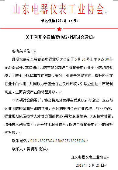 关于召开全省输变电行业研讨会通知