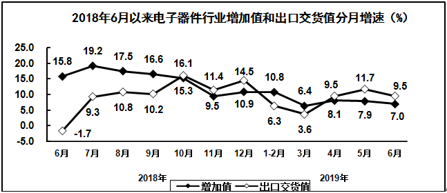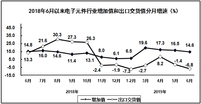 上半年,电子元件及电子专用材料制造业增加值同比增长14.1%,出口交货值同比下降2.8%。主要产品中,电子元件产量同比下降24.9%。
