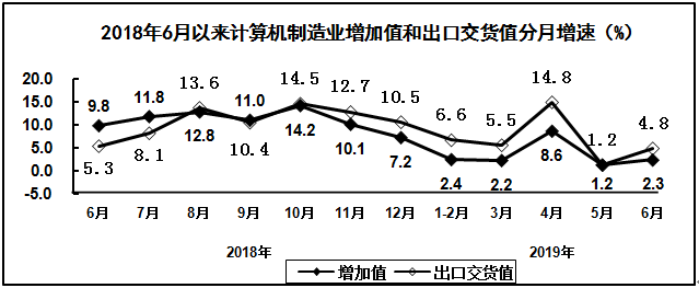 上半年,计算机制造业营业收入同比增长4.6%,利润同比增长4.9%。